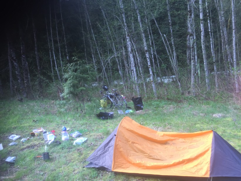 After a short cycling day, I found a great spot right by the river to set up camp.