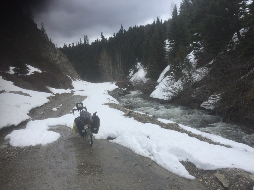 Hate to disappoint anyone who expected me to be in Penticton or beyond by now, but I am just 61km from Hope up the Coq as of May 8th overnight. Let me explain: Snow. Lots of it.