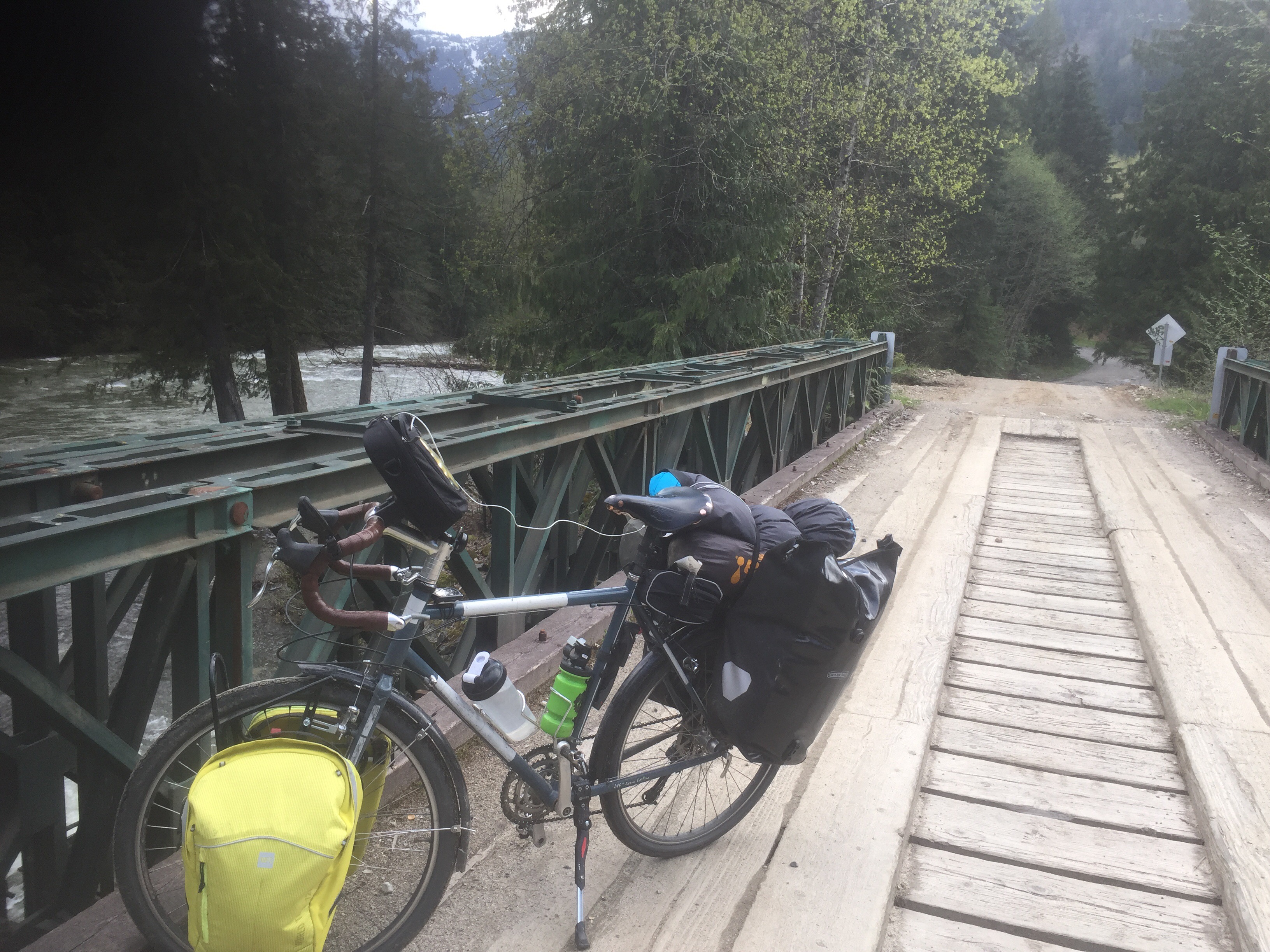 Insistent on avoiding the dreaded Coquihalla Highway, I took the trail instead. The Coquihalla River Trail started not so bad – quite nice actually, though the roads were rocky pothole central. My touring bike did fine, but this trail is built for mountain bikes and ATVs. I found some good views, spots for water refills, and neat little bridges across the river.
