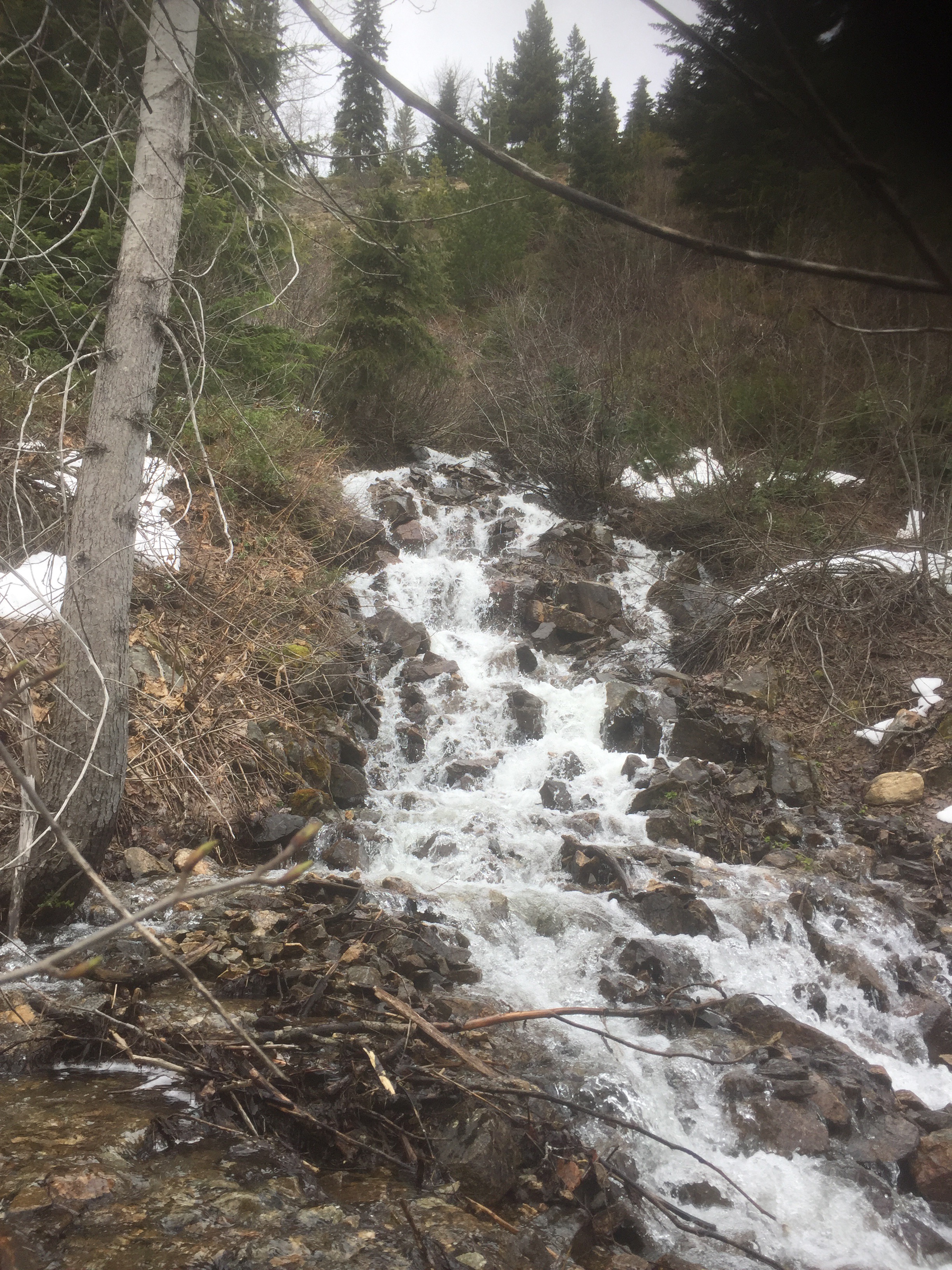 May 7th provided my first bear encounter: a black bear the size of a large dog about 20 metres ahead of me in a half-snow-covered section of the trail. I could not have been more prepared – bear bell attached to handlebars, animal repellant whistle on jacket zipper, and bear spray in water bottle holder. And it could not have gone smoother – I stopped, rang my bell a couple times, and it took a couple steps and ran away before I could snap a pic (sorry fans!).