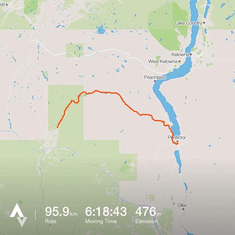 Arriving in Penticton at 8pm after a long, wet day of cycling, I treated myself to a motel. While I’ve enjoyed camping and waking to the sounds of woodpeckers pecking, birds chirping, and flowing rivers, being back in a bed was a great relief. Spent the night wicking mud off my bike and re-organizing, then filled up on White Spot’s endless “smash brown” potatoes on my way out of town. Looking forward to some Myra Canyon views, apparently one of the most scenic sections of the whole Trans Canada Trail!