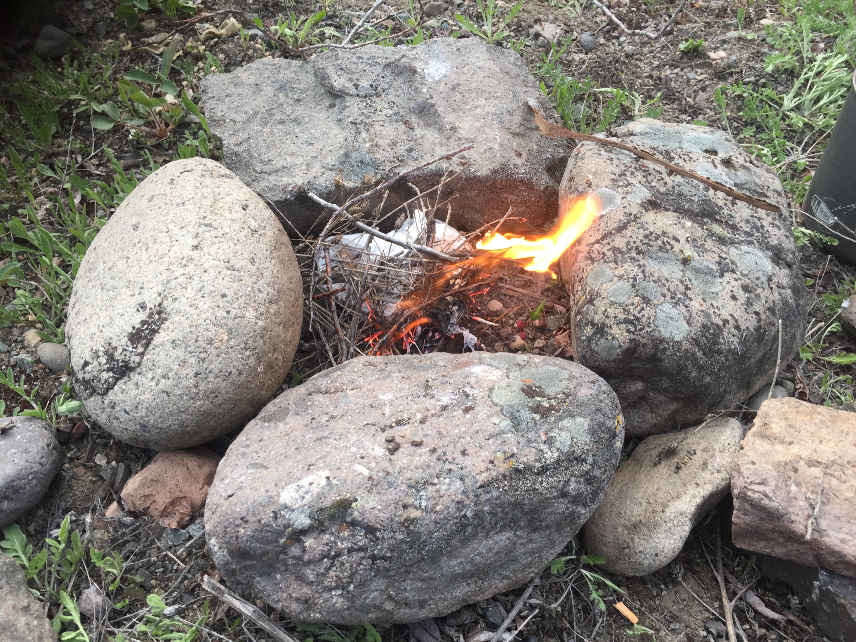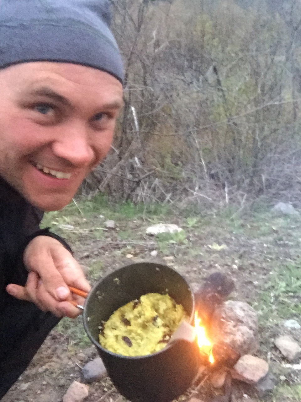 Second, I ran out of multifuel when starting to boil water for quinoa dinner. This left me two options: feast on seeds and dried cranberries… Or build a campfire from scratch with visions of sweet quinoa salad. Any guesses on which I chose?