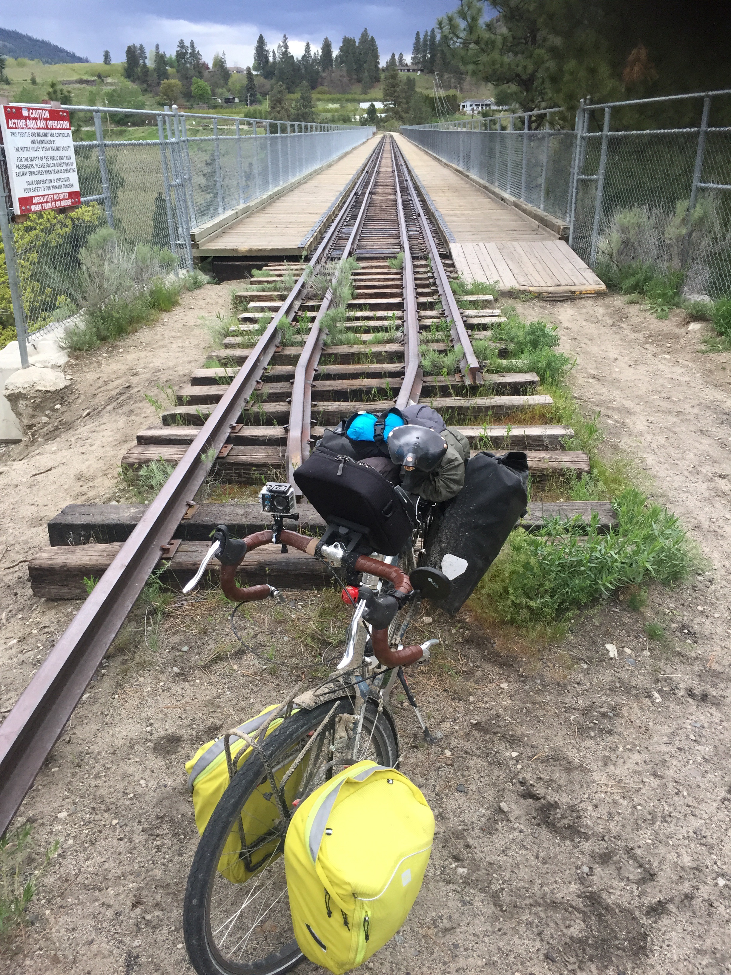 Arriving in Penticton at 8pm after a long, wet day of cycling, I treated myself to a motel. While I’ve enjoyed camping and waking to the sounds of woodpeckers pecking, birds chirping, and flowing rivers, being back in a bed was a great relief. Spent the night wicking mud off my bike and re-organizing, then filled up on White Spot’s endless “smash brown” potatoes on my way out of town. Looking forward to some Myra Canyon views, apparently one of the most scenic sections of the whole Trans Canada Trail!