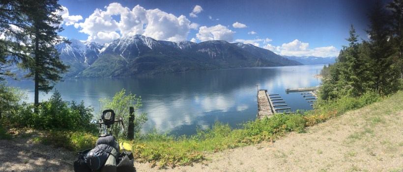 Hope you’re taking some scenery photos without the bike as well. The lake with snow-capped mountains with dock was awesome!