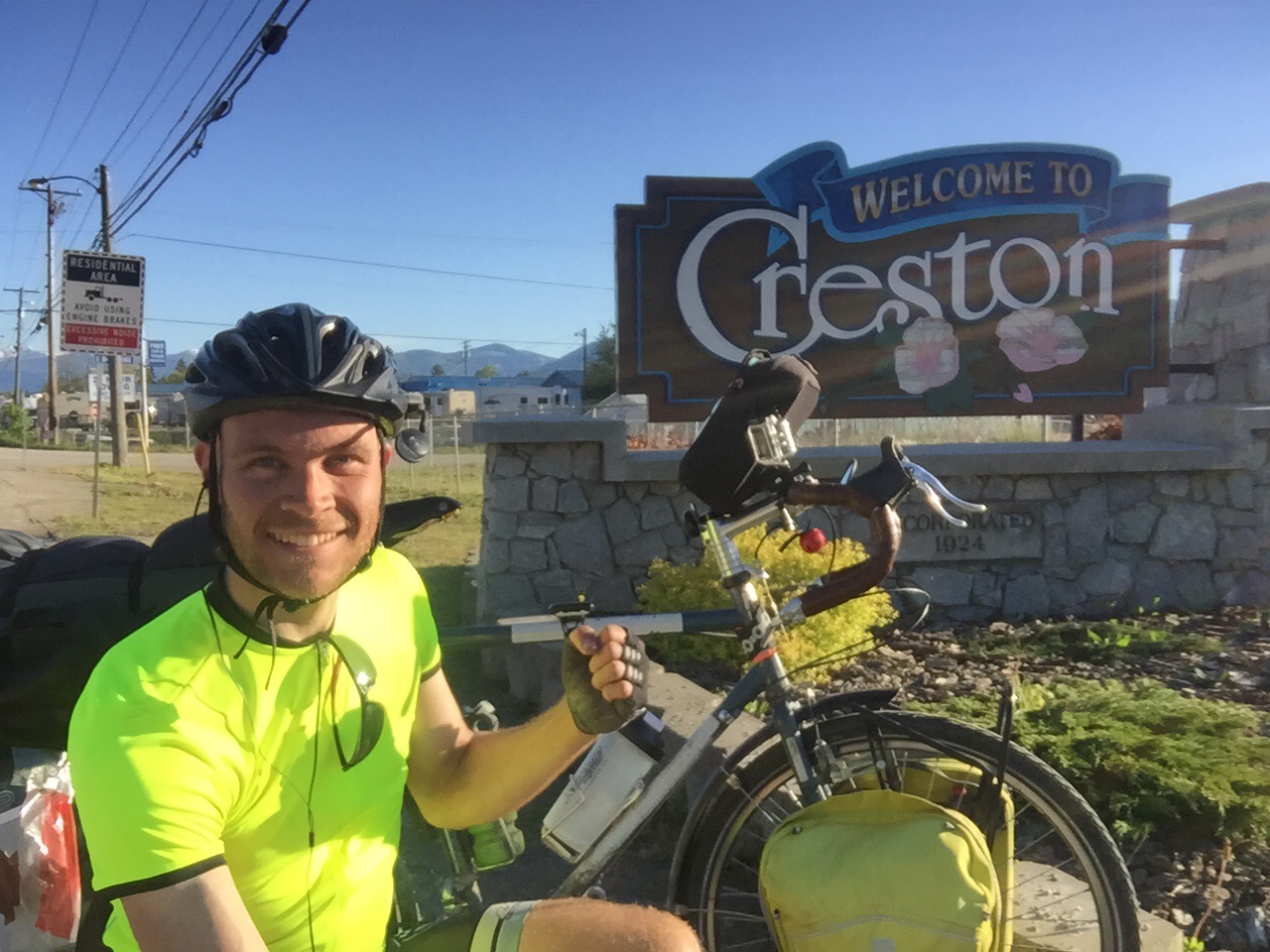 Pedalling into Creston, I found a secluded public grassy spot near the railroad tracks to pitch my tent.