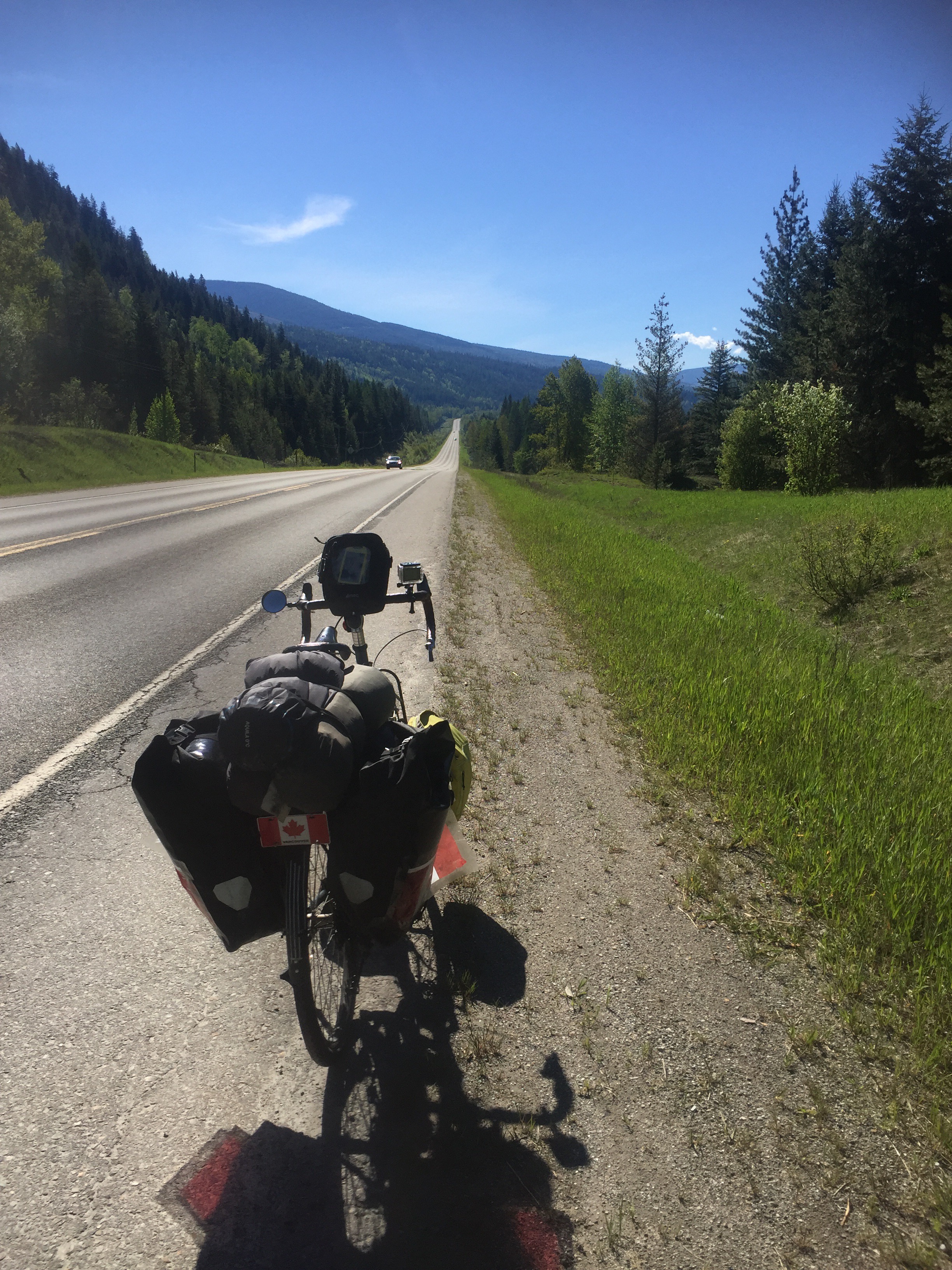 Cranbrook’s Superstore parking lot provided yet another funny/bizarre/fortunate encounter, which seem to be quite frequent! Packing up my groceries, I got talking with a regular man passing by and mentioned I didn’t know where I’d camp that night and would find a grassy spot for my tent along the way like usual. Almost immediately he explained he works for a helicopter company, offering me the access code for their office at the airport just outside Cranbrook to stay the night! Quite the treat to be inside, re-organize, and recharge the gadgets!