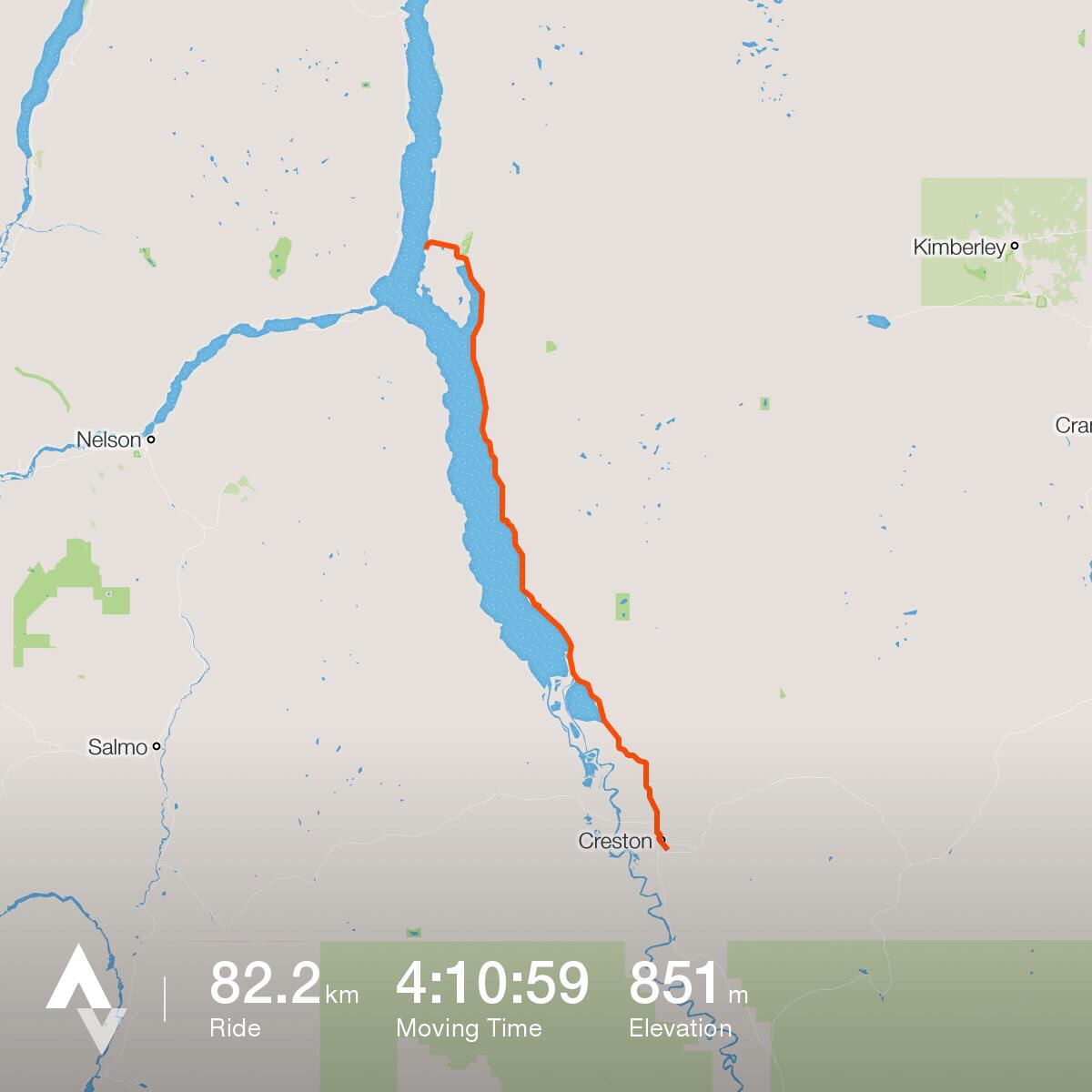 After being stalled for hours by making the same mistake twice, the silver lining was my bike was SO ready to chew up some kilometres. Bright and sunny Saturday was a dream ride, straight down the East coast of Kootenay Lake in to Creston.