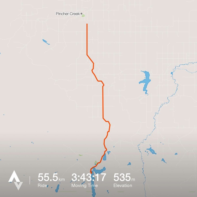 I knocked off as many kilometres as I could, setting up my tent beside the highway near Pincher Creek knowing the next couple days would bring some combination of wind, rain, and thunderstorms.