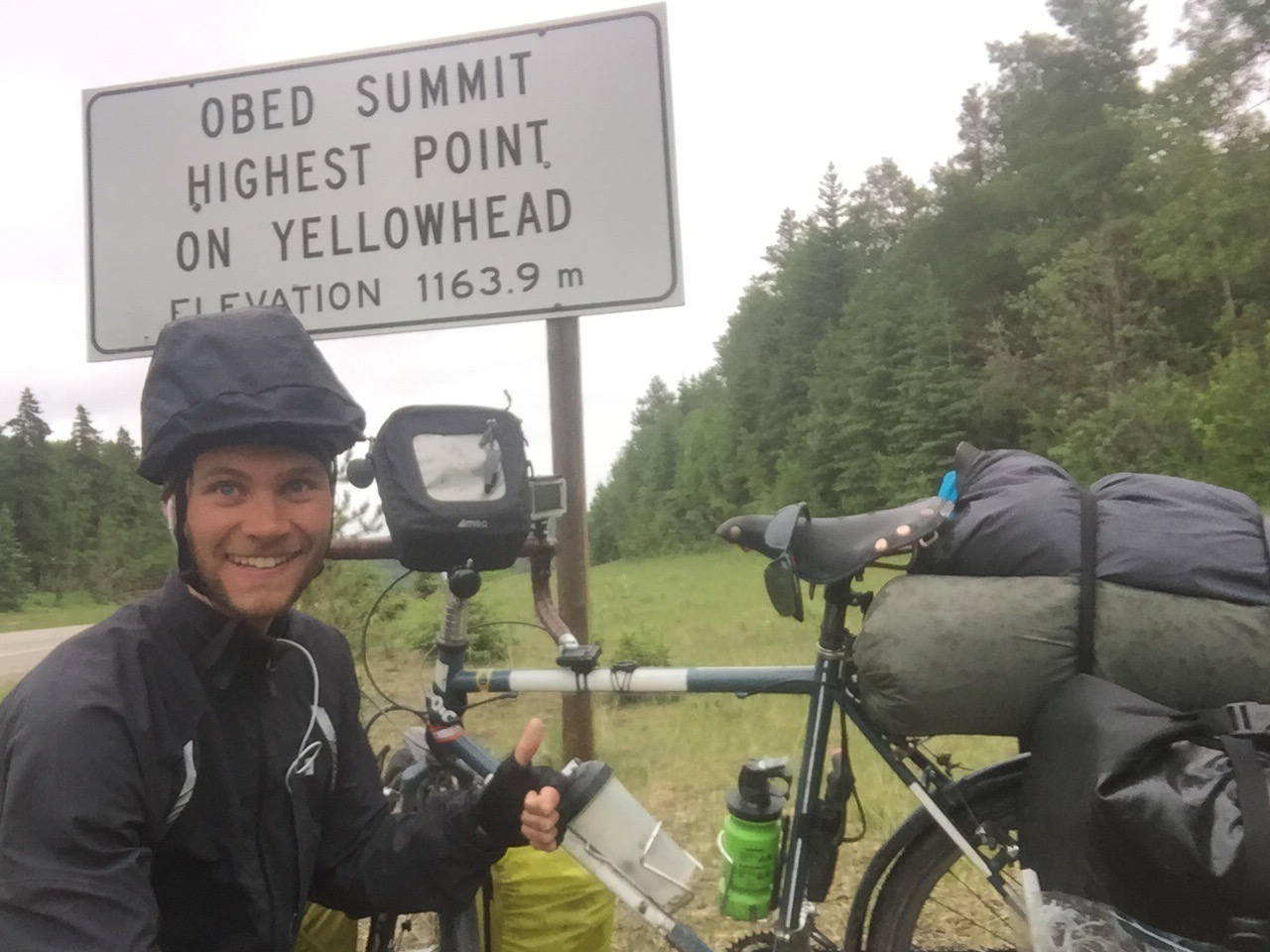 Friday brought much more rain and my coldest day since BC, which I happily endured for the consistent Eastbound tailwind! Despite the ugly day, I reached a state of pure bliss several times that day, which I found quite intriguing. After gliding in to Edson’s Tim Hortons to warm up with two XL hot chocolates, I advanced to the Niton Junction Motel, as buckets of overnight showers were forecasted and my tent was already damp from the previous night despite my excellent camping spot.