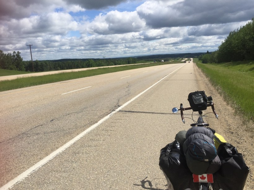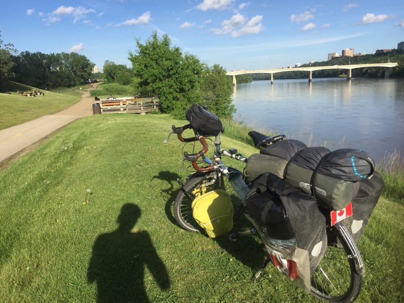 Well-rested again, I got an early Saturday start with the goal of reaching Edmonton that day knowing it would require my longest cycling day yet. From my pre-trip research I recalled multiple cycle tourists describing their longest cycling days as “I just kept pedaling”. This is the perfect description, plain and simple. I did propel into Edmonton that evening, and would describe the day exactly as such. The legs would not have spun nearly as long or fast without two friends awaiting my Edmonton entrance.