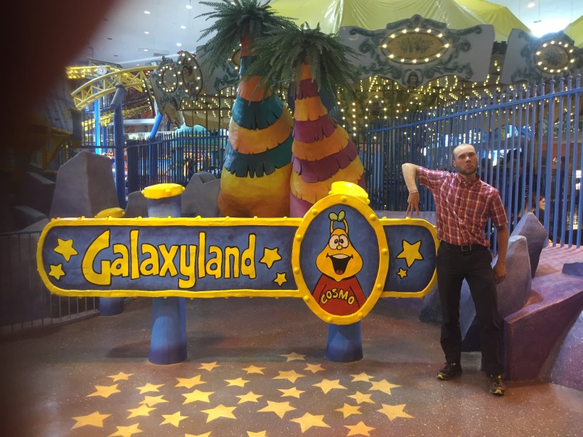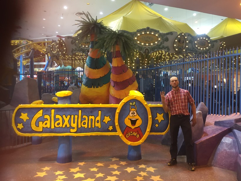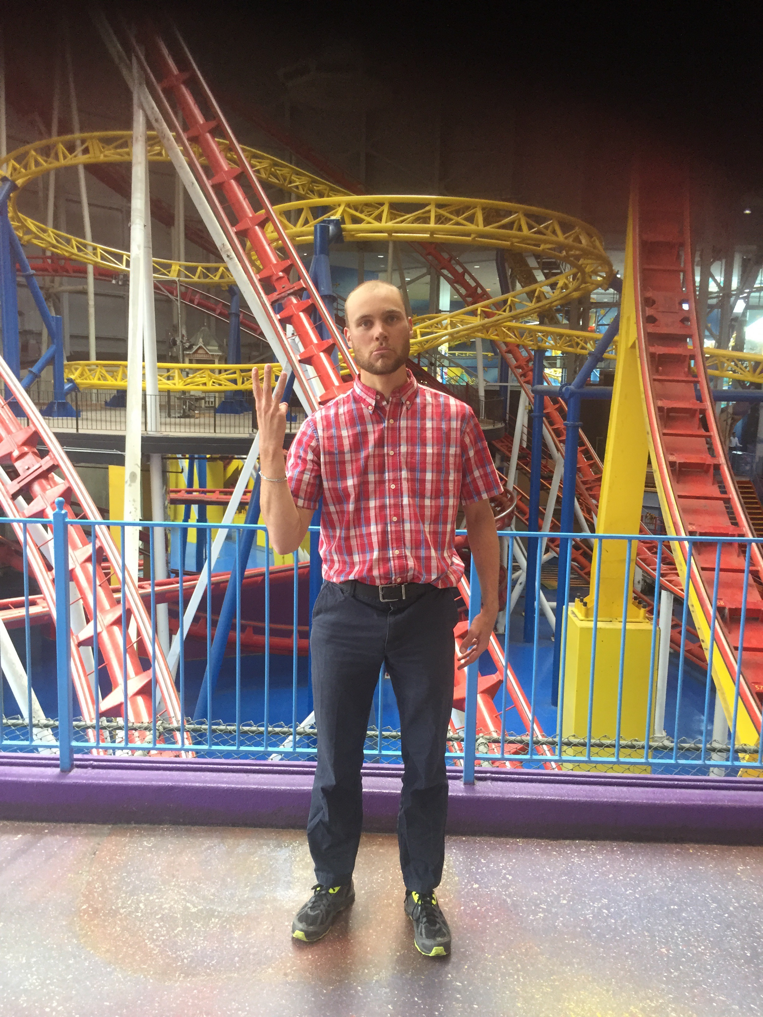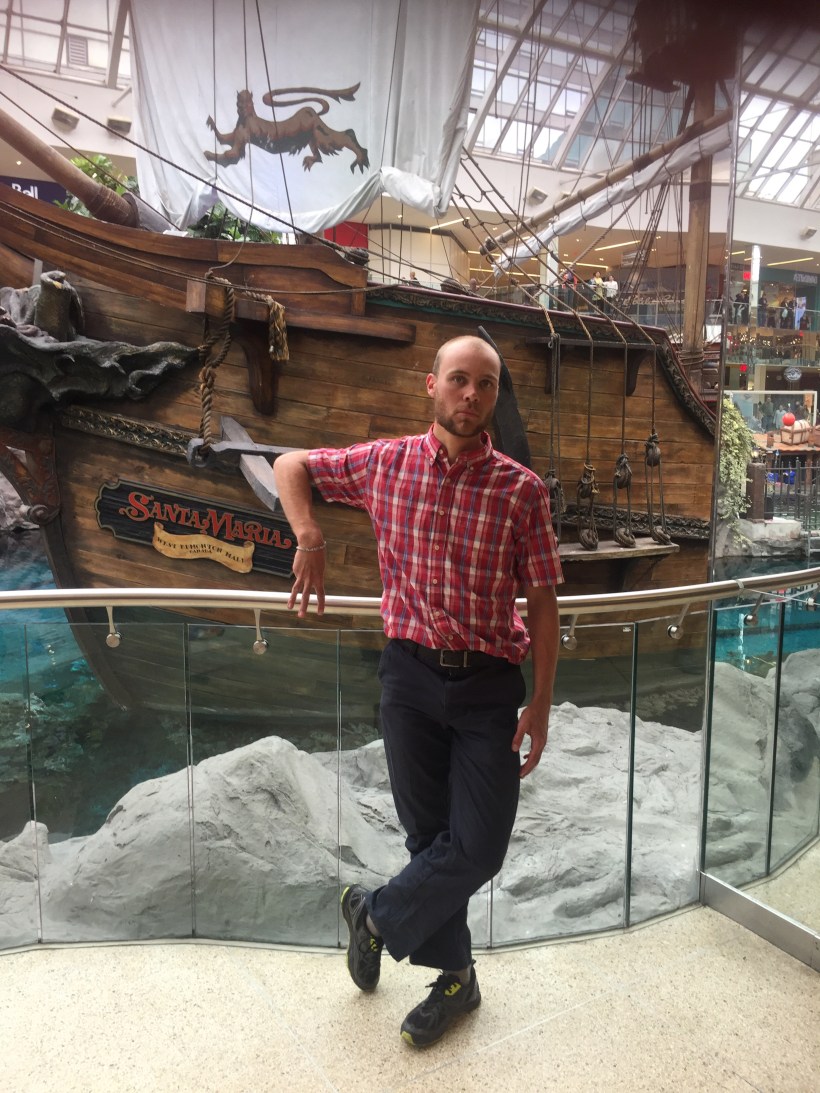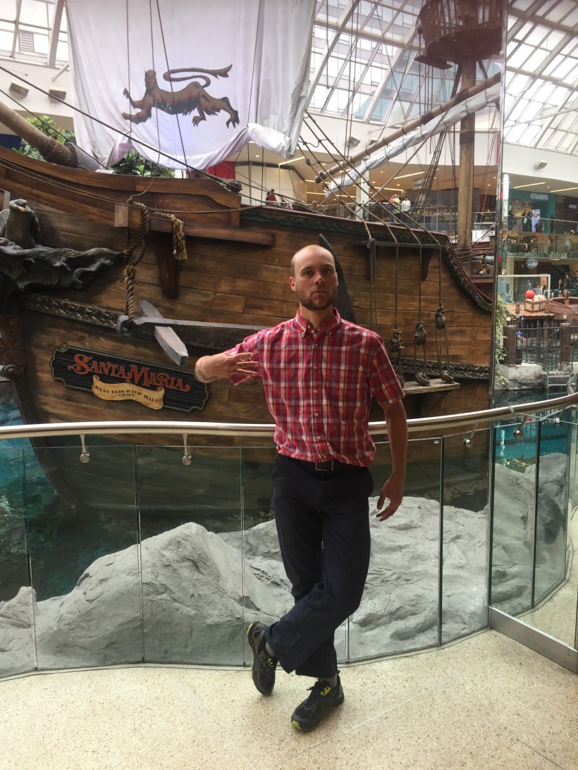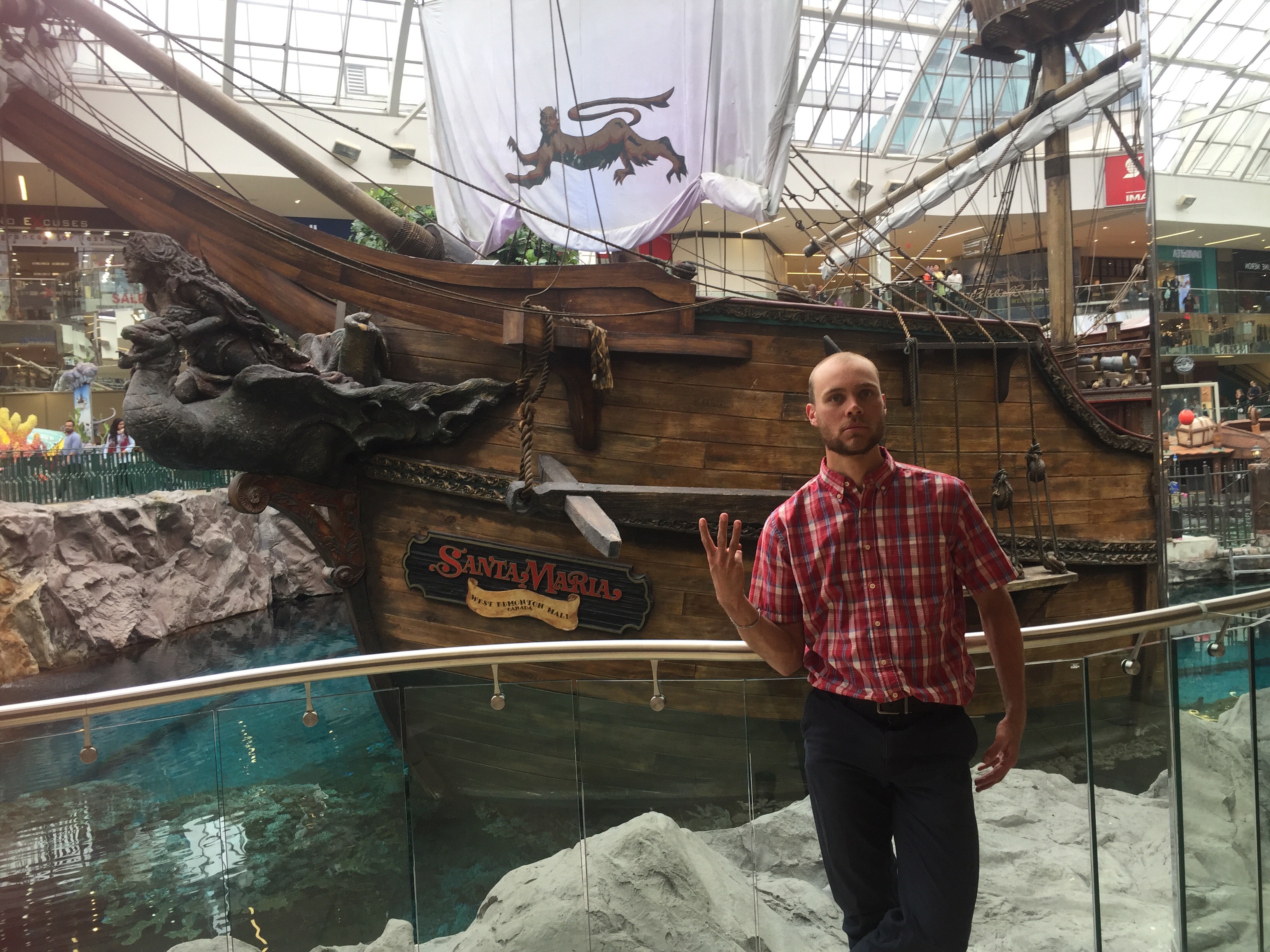 I continued to the residence of University Friend Nils, where I would pause for a couple days and enjoy the city. Sunday was highlighted by West Edmonton Mall staples: The world’s largest indoor amusement park, the world’s largest indoor wave pool, and an indoor lake featuring a pirate ship and seal shows. Naturally, my hand morphed into a W, then E, then M at each attraction: