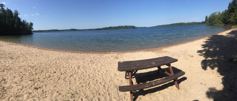 With a fresh chain and a good night’s rest, I set out from Kenora on Wednesday curious if my research on road conditions would prove to be accurate. It was. Seconds after turning off the busy highway 17 to the less travelled highway 71, I was puzzled yet relieved by the sudden vanishing of vehicles to my left. I checked out Rushing River Provincial Park before setting up camp near Sioux Narrows.