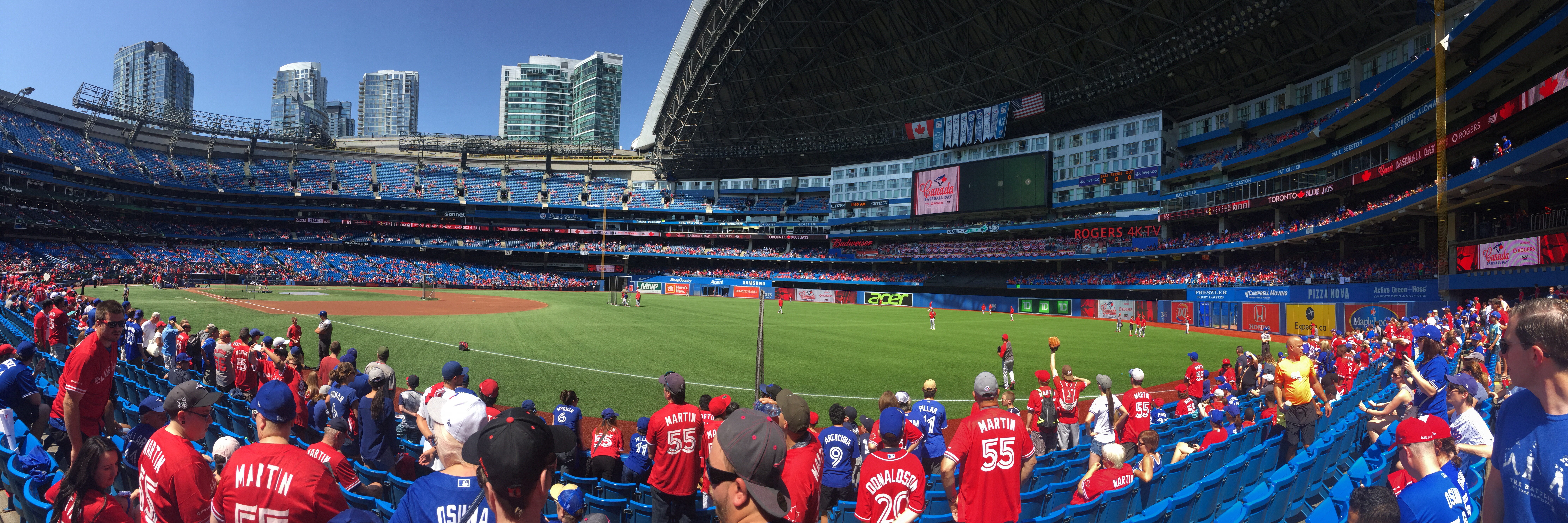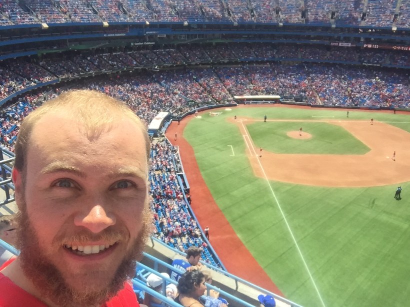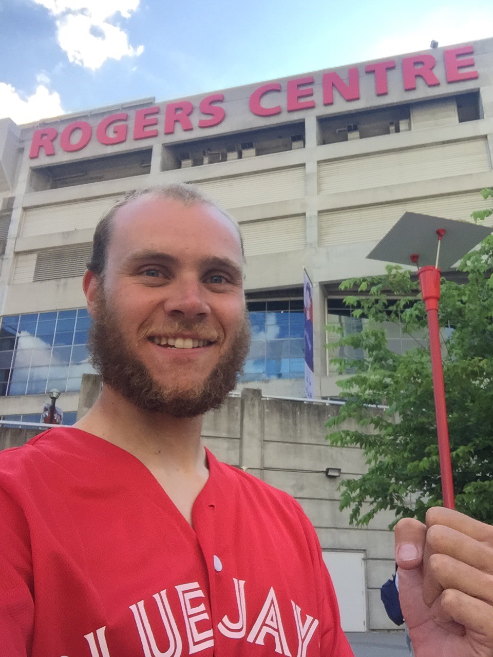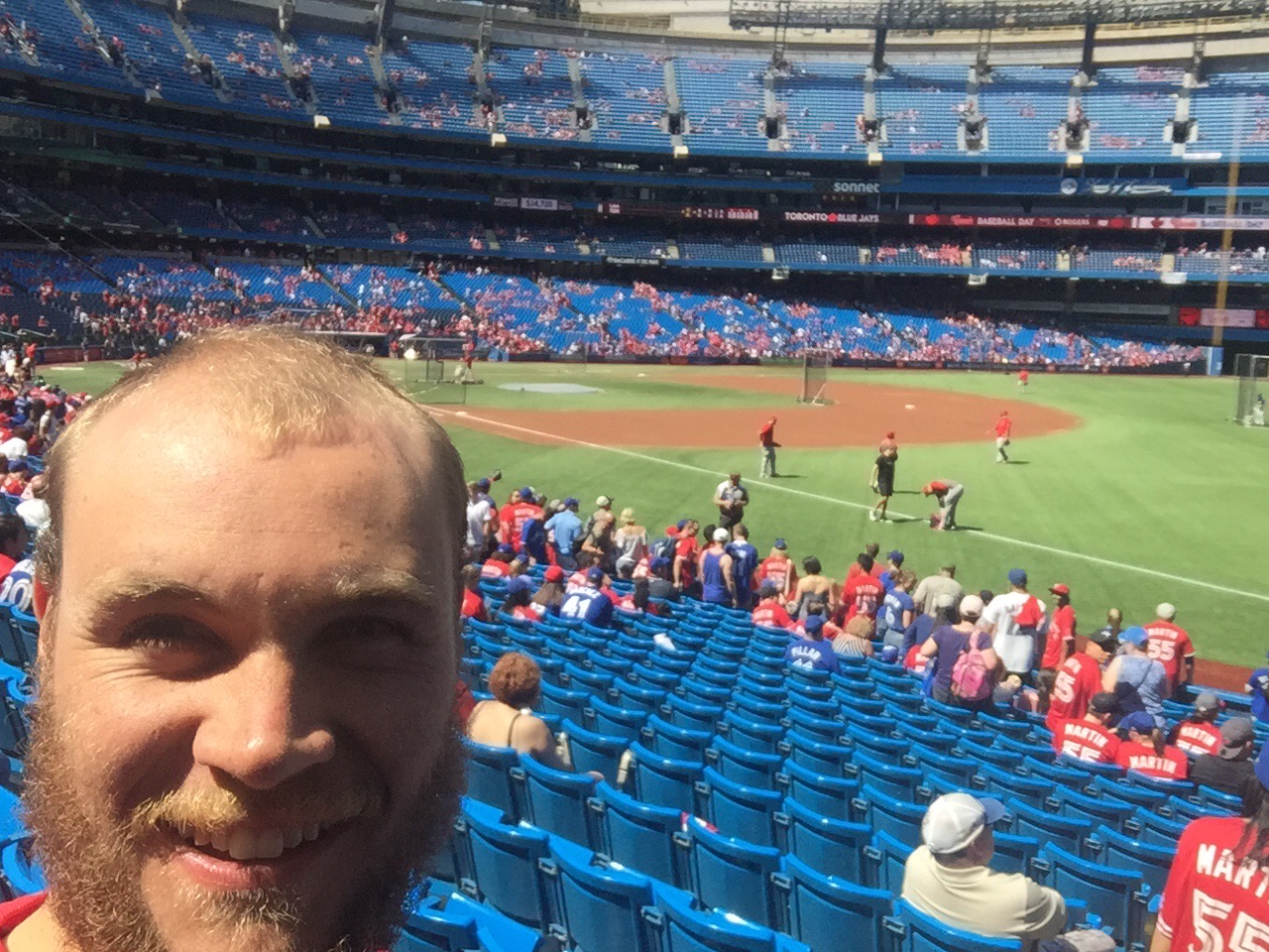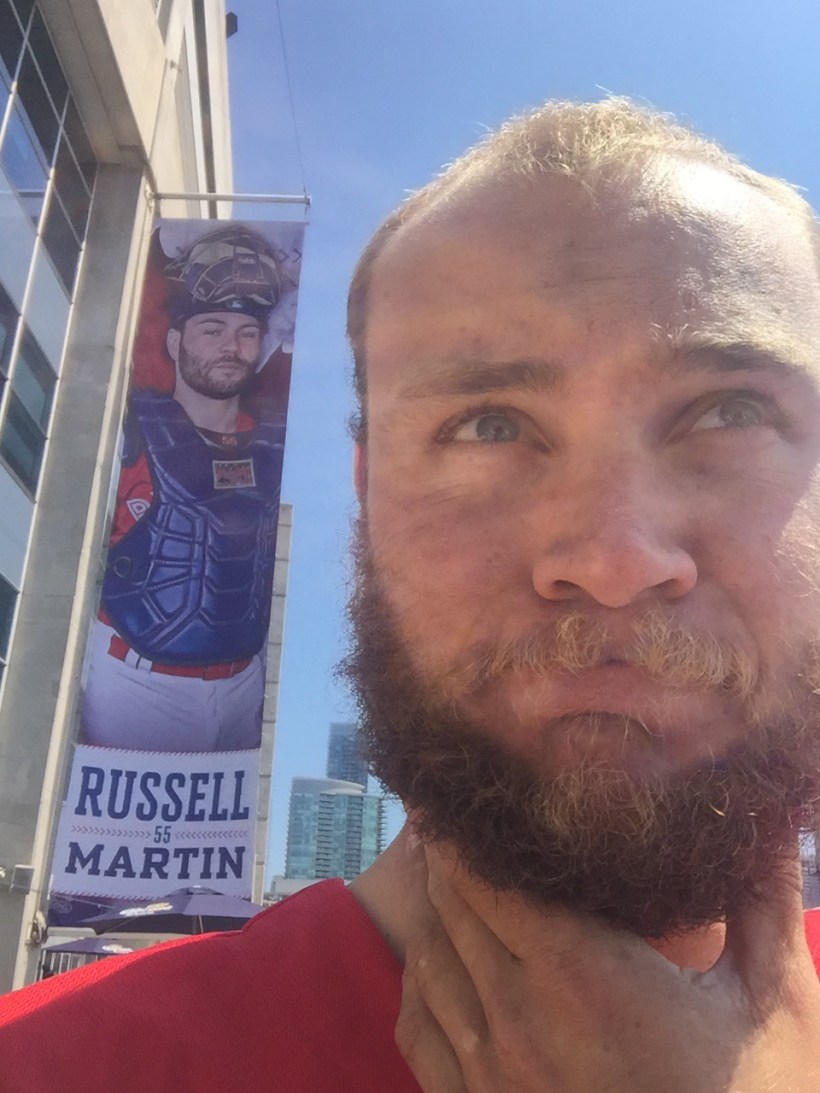 Plaid for life!My Sunday featured a Jays game which looked grim until a very sudden seven run rally in the bottom of the ninth ending with a walk-off grand slam. Jays win 11-10, and the crowd goes wild! Got in early and watched the LA Angels’ batting practice.One of two Tim Hortons I found inside Rogers Centre.Hmm, how does my beard measure up to Russell Martin’s?Getting up to my seat in section 511 was quite the hike!View from my seat.Jays win, and I got a red face and red giveaway Russell Martin jersey!