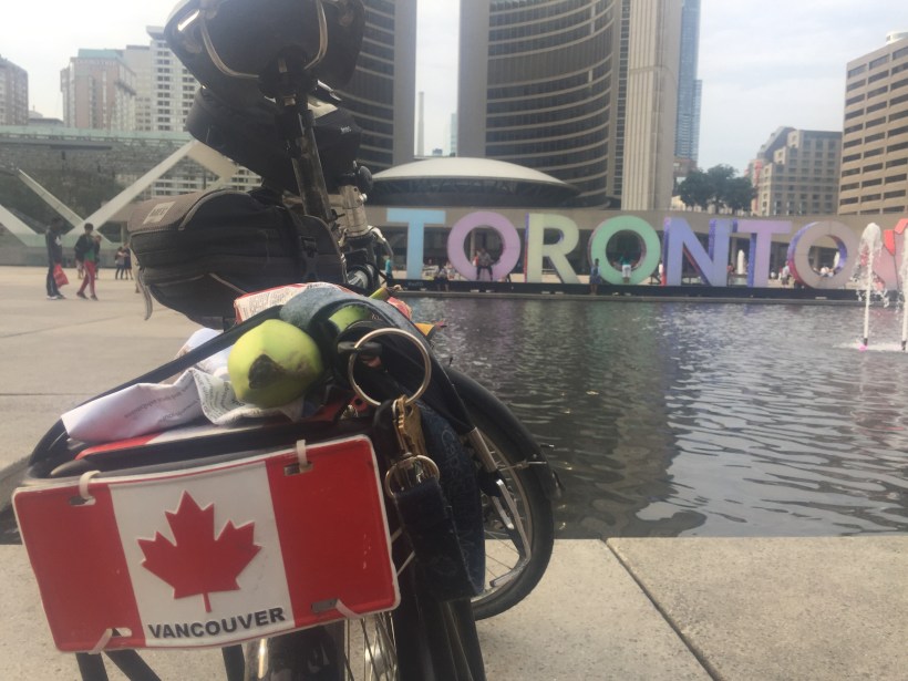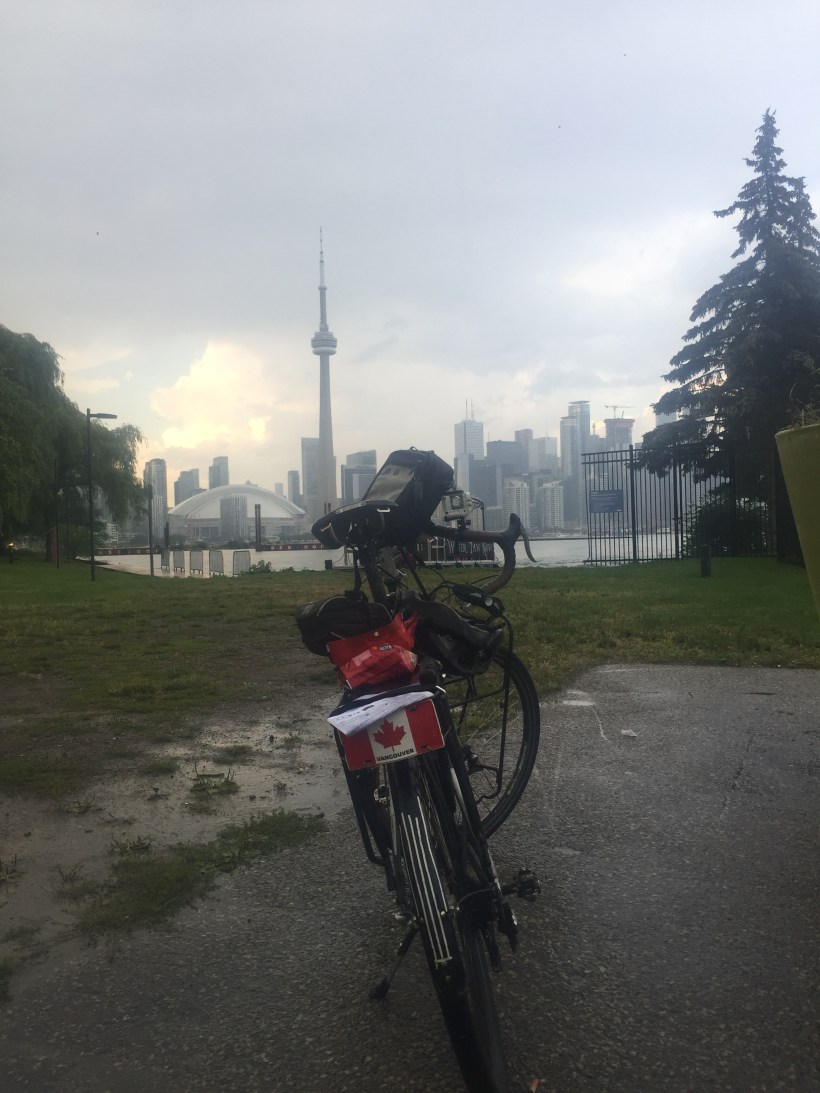 After a whopping four rest days in Toronto, I returned to my abnormal lifestyle on Thursday, meeting an inspiring cycle tourist on my way out of town.