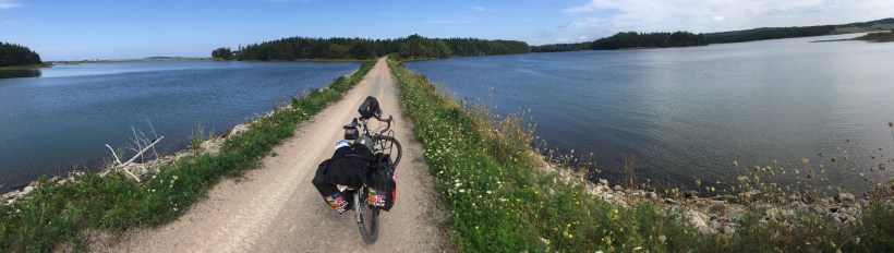 So Wednesday morning I chose the Celtic Shores Trail, yet another former railway section of the Trans Canada Trail. Egged on by mighty tailwind, I struggled through its rocky beginning before enjoying a long stretch of lovely gravel littered with coastline views. Being a rail trail, of course it was quite flat – not to worry, I’d been warned I’d have plenty of climbing on the Cabot Trail ahead!