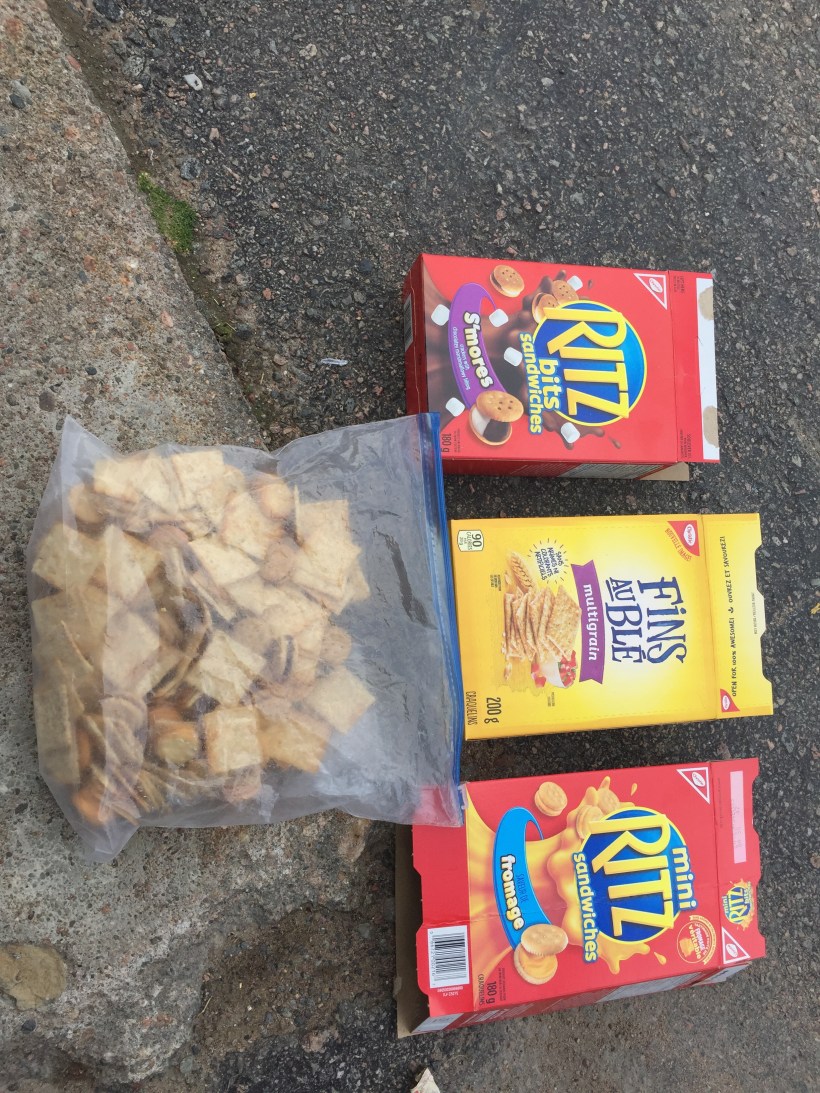 I deviated from the usual trail mix ingredients due to limited grocery selection.