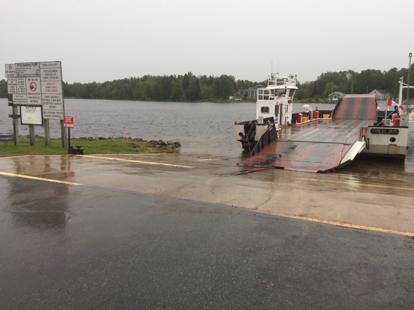 Upon finishing the Cabot Trail loop, my next destination was the North Sydney ferry terminal to complete the province. I opted for a scenic route along the Bras d’Or Lake (which I soon discovered is pronounced like the end of “labrador” and not “brass door”), which would also facilitate a visit to the Highland Village Museum. Monday morning’s downpour motivated hasty pedalling to the comforting, warm museum via a very short Little Narrows ferry.