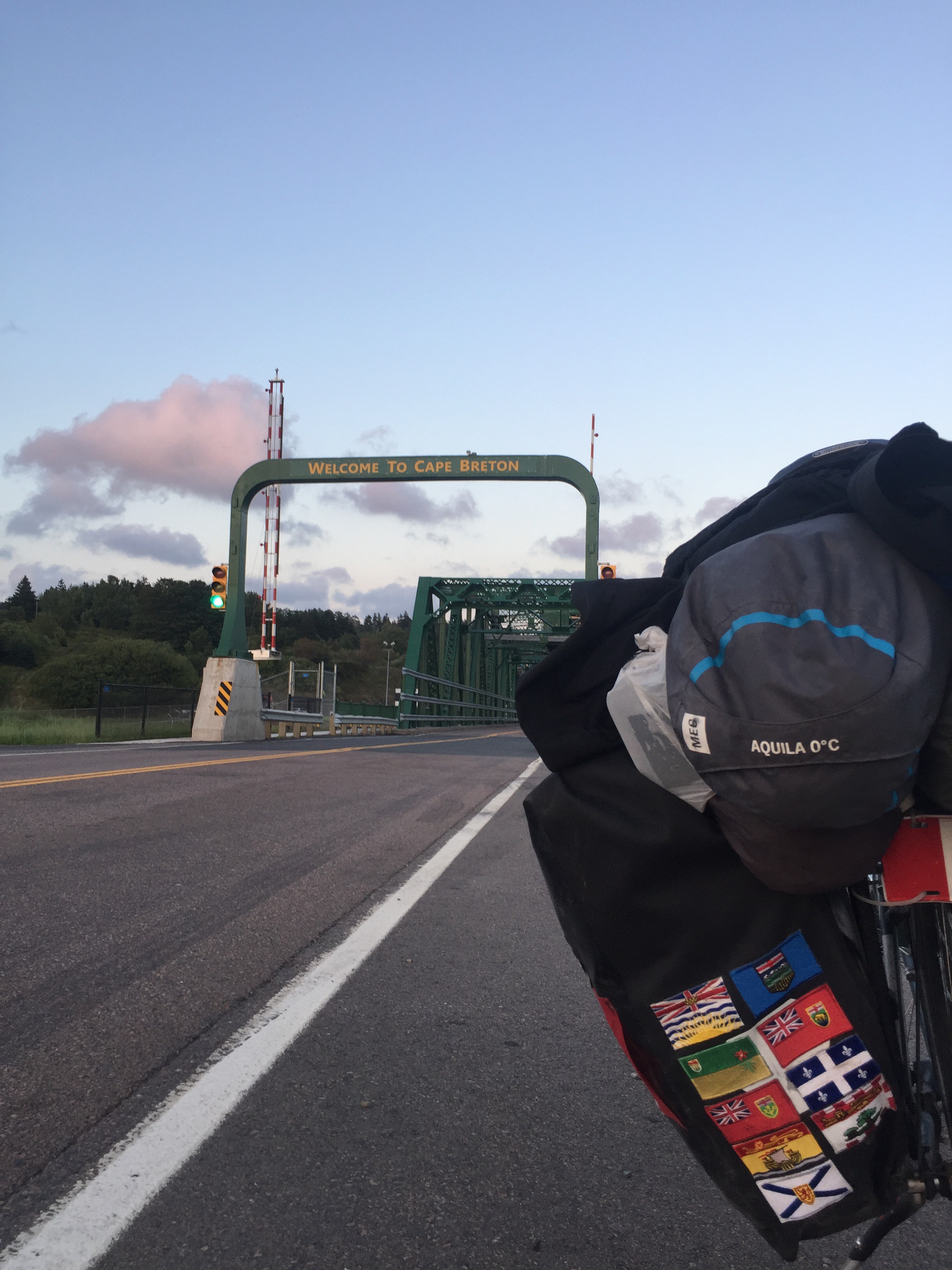 Crouching to minimize the impact of gusting headwinds, I eventually reached Nova Scotia’s gateway to the tenth and final province.
