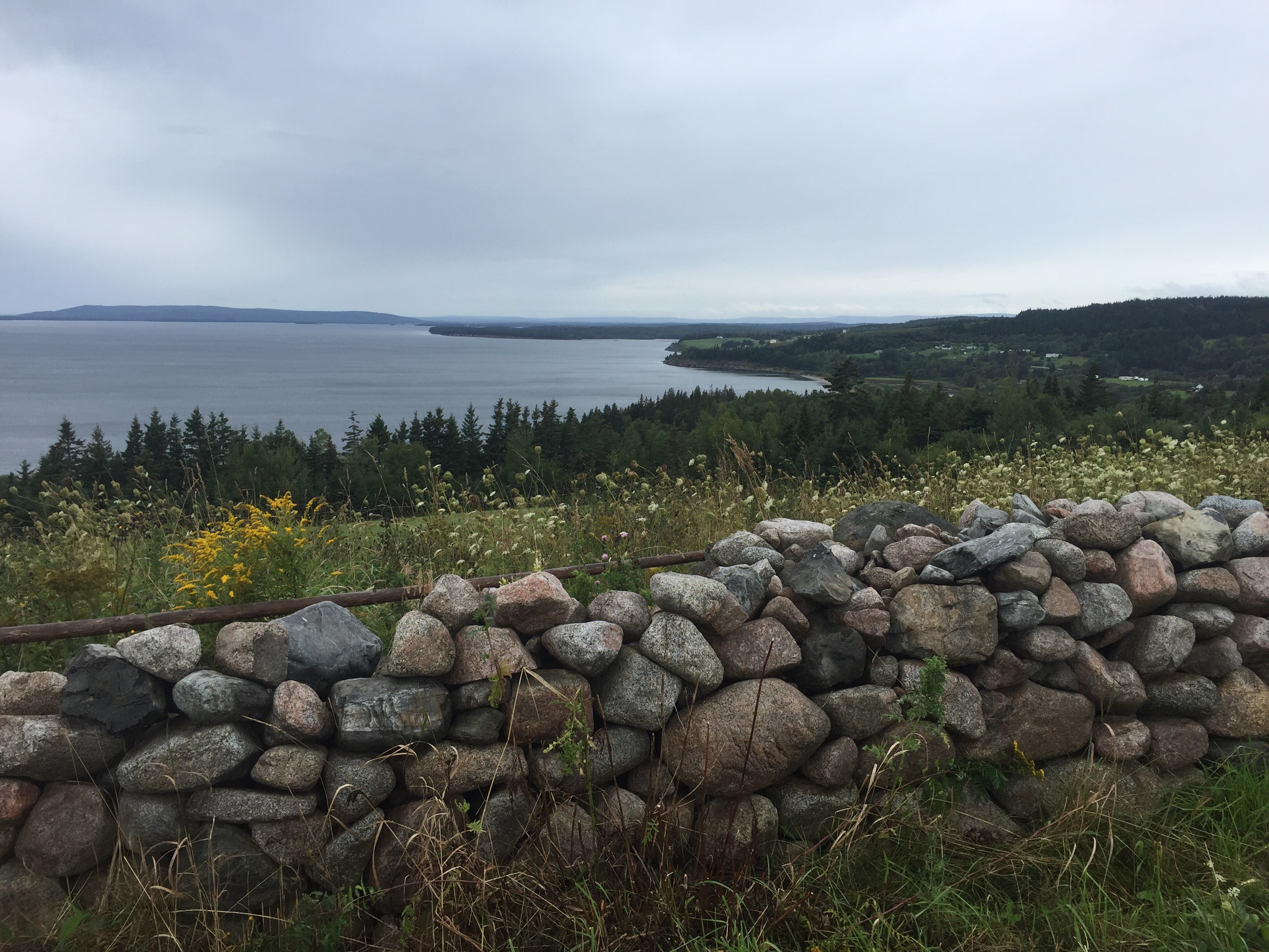 While the Bras d’Or mirrored the sky’s dreary gray and not the royal blue I’d hoped for, the fog thinned that afternoon so my ride did contain many lookouts of the island’s giant oddly shaped lake.